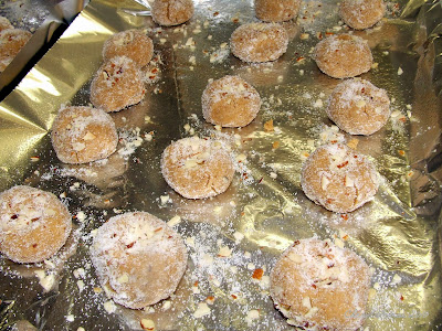 Shape in 1-inch balls, then roll each ball in sugar/almond mixture.